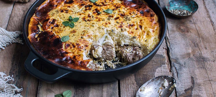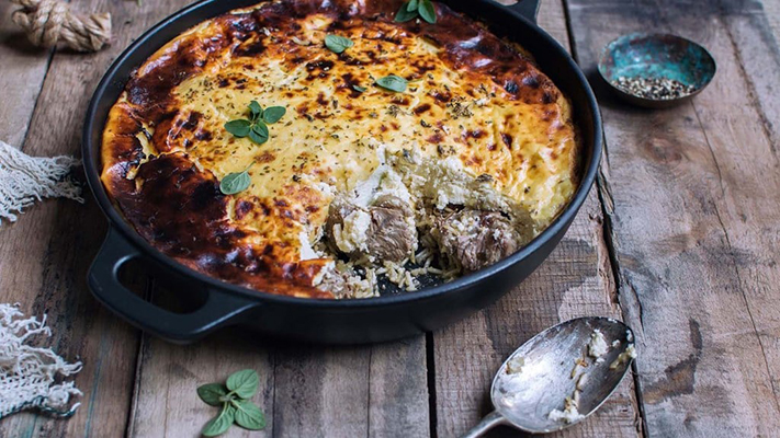 Albanian Yogurt Casserole with Lamb