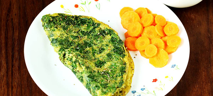 - Option 2: To make an omelet, simply leave the egg and spinach just as you poured it into the pan. Wait until the bottom is slightly browned, then flip. Cook for another thirty seconds to a minute until slightly brown.