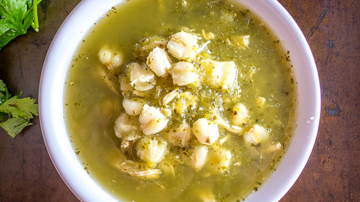 • Cook posole, covered in 1 quart unsalted water over medium low heat, stirring occasionally until soft but not mushy, about 3 hours for dried or 1 1/4 hour for frozen. Add more water as needed.