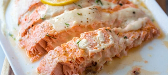 • Grease a baking dish or line it with parchment paper. Place the salmon in the baking dish.