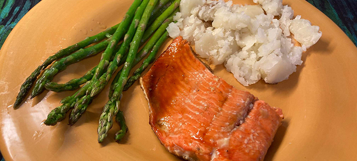 Salmon is a West Coast favorite and this is an easy way to prepare a fillet packed with flavor. The glaze brings together a Canadian favourite, maple syrup, with the Asian cooking staple, soy sauce, for a lovely combination.